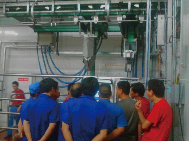屠宰生产线上又升起了新星——记自动开骨开膛机的调试安装