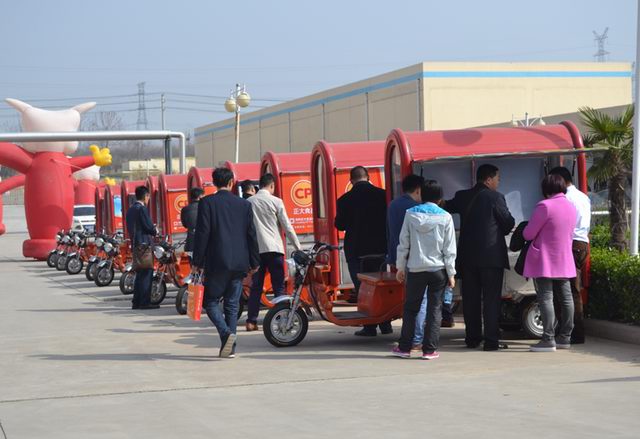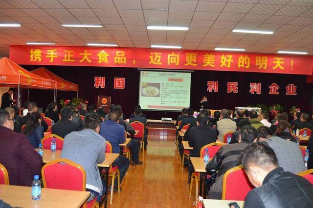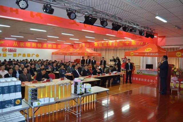 会前与会人员通过参观廊参观了公司生产现场。会议首先由郑宝振副董事长致辞,接下来报告了公司从农场到餐桌全产业链的经营理念、公司食品安全管理、目前产品及2015新产品研发方向和营销方案,随后进行了现场经销商代表发言、产品品尝、现场售卖及订单签订等一系列活动。各位参会人员对本次产品推介会给与了很高的评价,都说“正大食品真是好!正大就是不一样!”