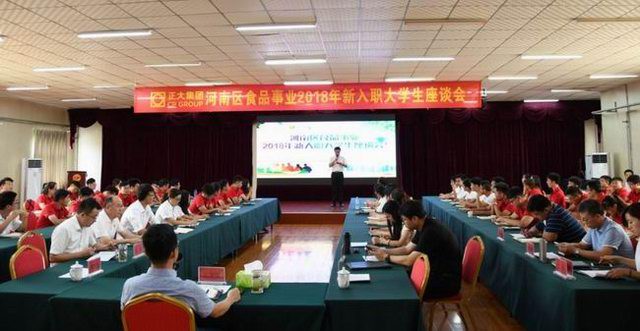 8月16日下午13时,河南区食品事业2018年新入职大学生座谈会在洛阳正大行政楼五楼会议室召开,就新入职大学生在工作和生活中遇到的问题以及对公司的意见和建议进行沟通交流,出席此次座谈会的领导有:王学斌总裁、霍涵营销总监、武磊营销总监、洛阳正大各部门主管,以及河南区食品事业2018年新入职的64名大学生。王学斌总裁主持座谈,并***听取大家的意见和建议。