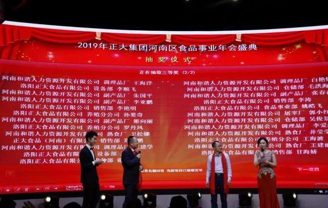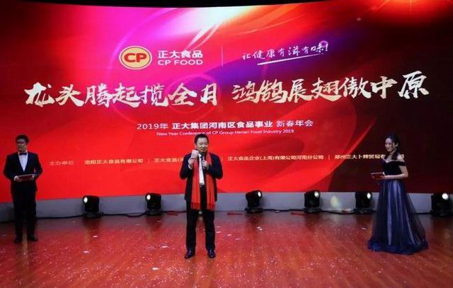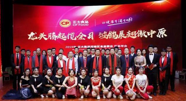 2019年1月21日,“龙头腾起揽全月,鸿鹄展翅傲中原”——正大集团河南区食品事业2019新春年会在洛阳东华大酒楼盛大召开。正大集团农牧食品企业(中国)副董事长王鸿章、正大集团河南区食品事业***总裁王学斌、正大集团河南区产业化总裁宋小兵及河南区食品事业各公司部门主管、员工代表300余人齐聚一堂,共享盛典。年会特邀河南东方正大有限公司洛阳饲料厂董事长茹怀智、中方副总经理黄天发及河南和谐人力资源开发有限公司董事、总经理王县委、副总经理张丽云参加。
