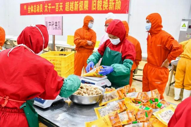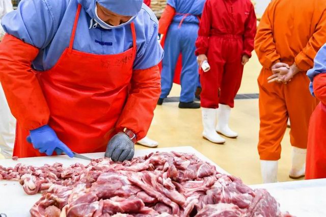 比赛分为两个项目:小酥肉原料肉切肉比赛和小酥肉包装比赛。公司屠宰车间、分割车间、调理品车间、副产车间和熟食车间共派出6支参赛队伍。小酥肉原料肉切肉比赛每个队伍时间限定20分钟,在20分钟内根据所切肉条的重量和完成质量评定名次。锅圈小酥肉包装比赛每个队伍包装300袋(约80kg)小酥肉,根据所用时间和包装合格率评定。比赛开始之前,熟食厂经理张沛宣布了比赛的规则,叮嘱参赛选手在比赛中注意安全,随后比赛拉开了帷幕。