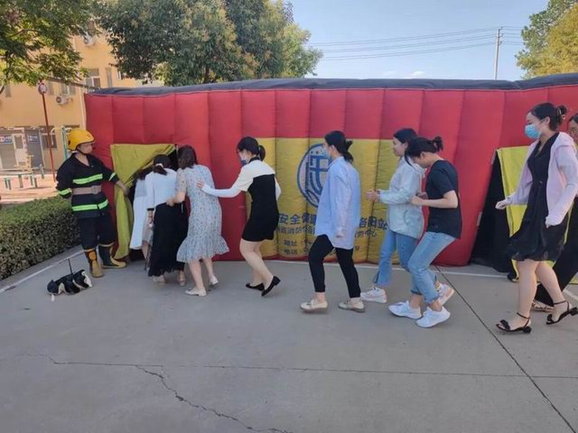 曲建华副总裁亲自带头体验逃生帐篷项目
