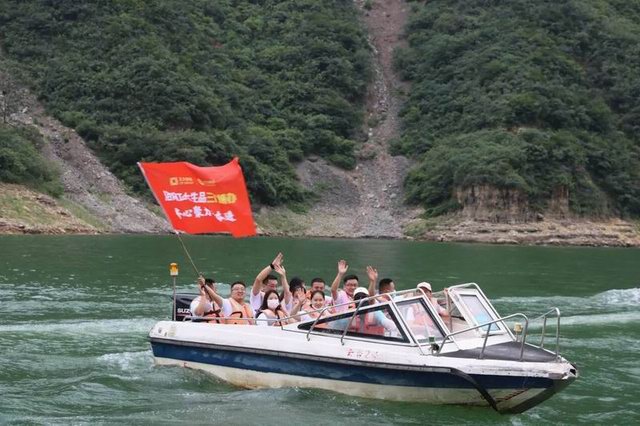 8月17日下午13时,团建队伍前往云台山红石峡风景区,各团队你追我赶,团队成员相扶相携。大家沿着既定的路线,个个精神抖擞,脸上洋溢着快乐的笑容,一面欣赏优美风光,一面在徒步中留下一片欢声笑语。下午15时,所有战队顺利完成了徒步挑战,成功抵达终点站。即使汗水浸湿了每个人的衣衫,但炎热和疲惫没有阻挡大家的前进,也没能让队伍行进的速度有一丝一毫的减缓。团队的信念激励并支撑着大家不畏艰难地一直走下去,徒步如此,集团发展的脚步亦是如此。随后,团建队伍带着队旗登上快艇,穿梭于山水之间,正如生品销售团队披荆斩棘、寻光而行,乘风破浪、追梦奔跑。至此,本次团建活动也***落幕。